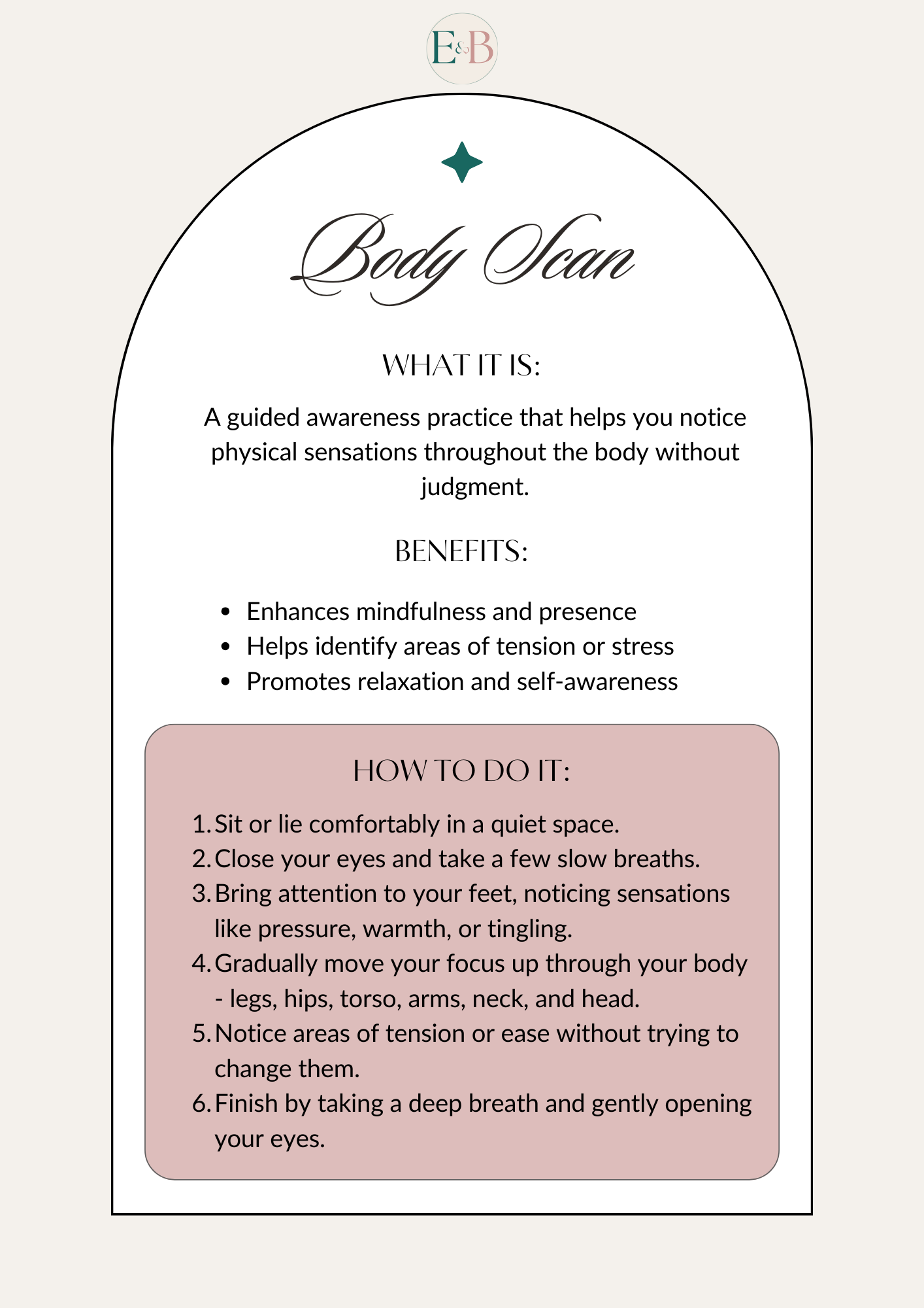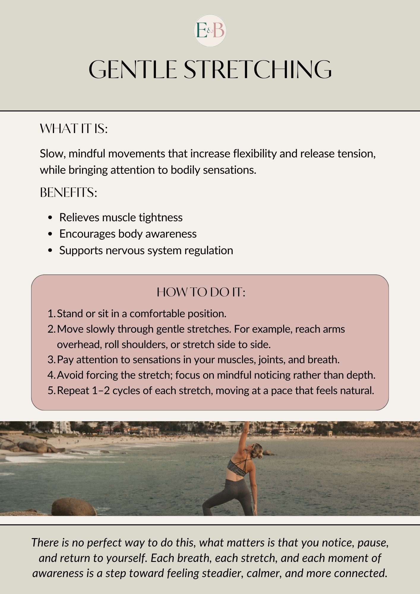 These exercises help to calm your nervous system, returned to the present moment, and reconnect with your body.